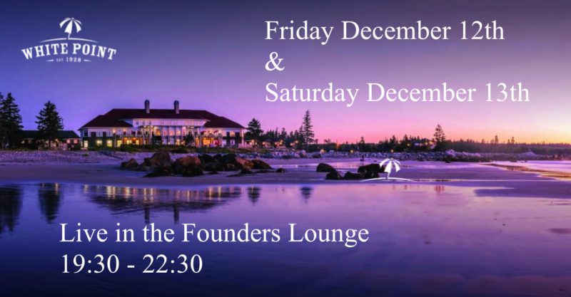 I’ll be performing two evenings in the Founders Lounge at the lovely White Point Beach Resort on Nova Scotia’s South Shore. I will be doing three sets of originals and covers from the 80’s, 90’s and 2000’s.  I’ll be on the stage with my 2 guitars and my keyboard ( aka “Band in a Box” ) for a night of good times and great food in a beautiful lounge/bar.